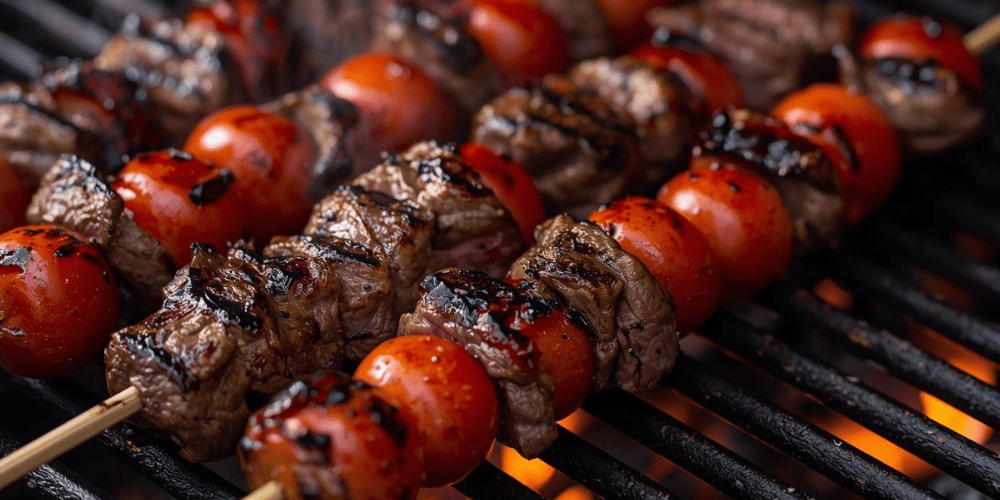 Thread the meat onto skewers, alternating with tomatoes. Grill the kebabs over direct high heat, with the lid closed, until the meat is cooked to your desired doneness (6 to 8 minutes for medium rare), turning occasionally.