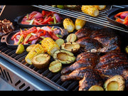 The Napoleon's Rogue® XT 425 SIB BBQ with Infrared Side Burner available in Stainless Steel or Black color has three burners, cast iron grids and a high top lid. This grill lights easily, every time, with a battery-free ignition. Grill the perfect steak using the integrated sizzle zone side burner or use it to make sauces and sides while grilling, and searing on the main area. The durable materials are both stylish and easy to maintain.